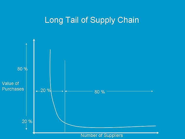 We are all lead to believe that Peroto 80/20 principle applies to all sectors of business. Manage 20% of the vendors who supply 80% value of the material. We tend to neglect the long tail of the supply chain. The small vendors who supply 80% of the bulk of the material. A good supply chain should mange these vendors also very carefully.